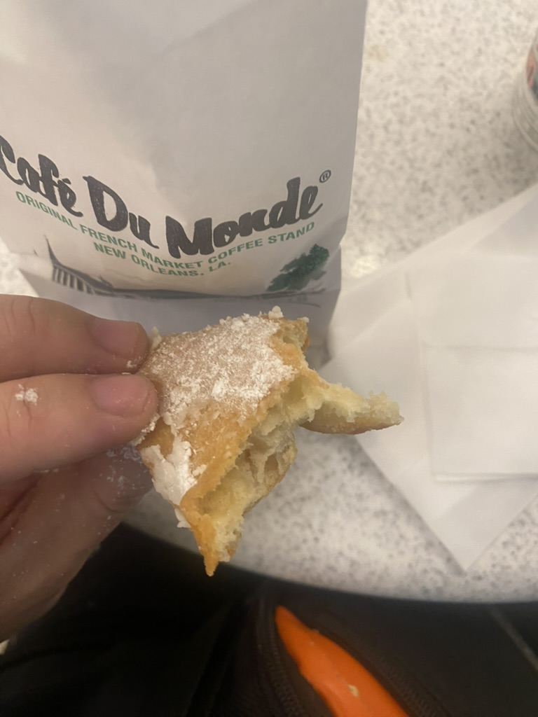 新奥尔良博物馆在北边城市公园里,旁边就是也有百年历史的Café du Monde(分店)。咖啡滚烫,Beignet吃起来像是甜版的油条。