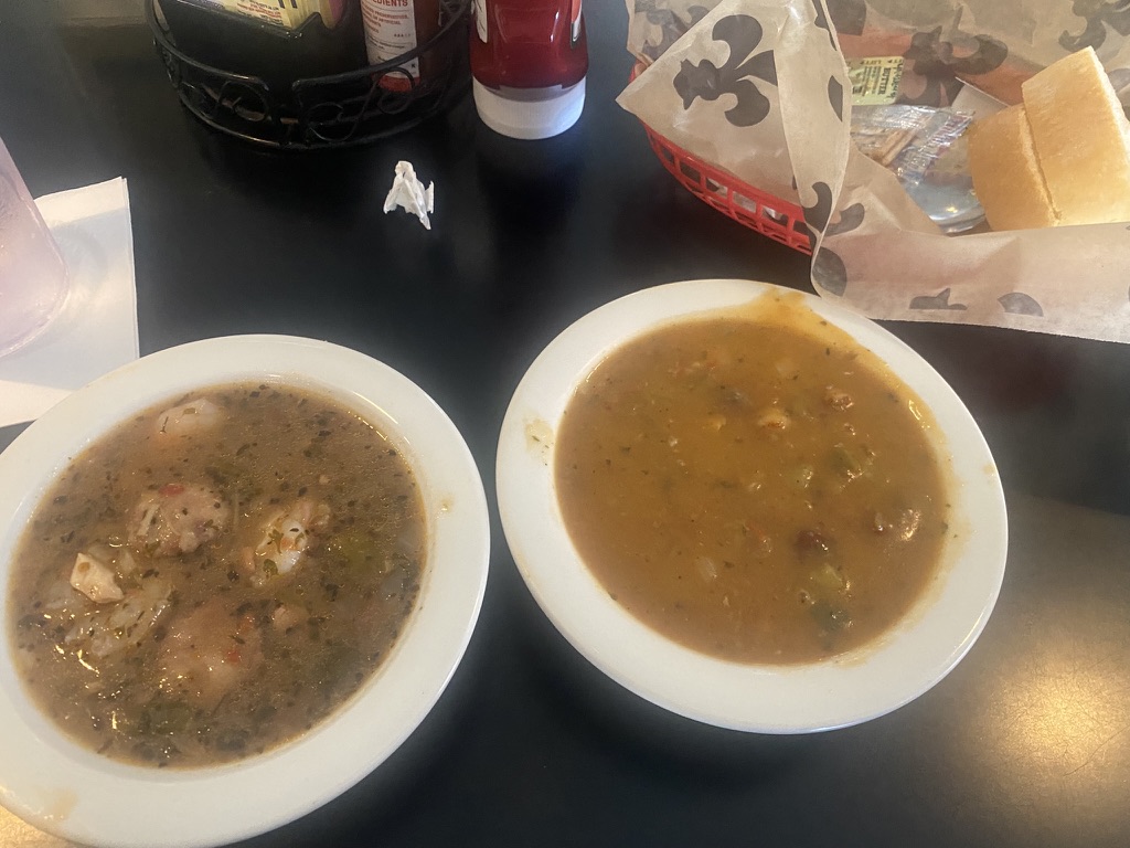 出门不远就是Liuzza by the track. 小店专卖南方美食,里面还有一些修女在吃饭。点了Gumbo和Crawfish Étouffée. 很喜欢这个单词哈哈。旁边配面包和饼干。